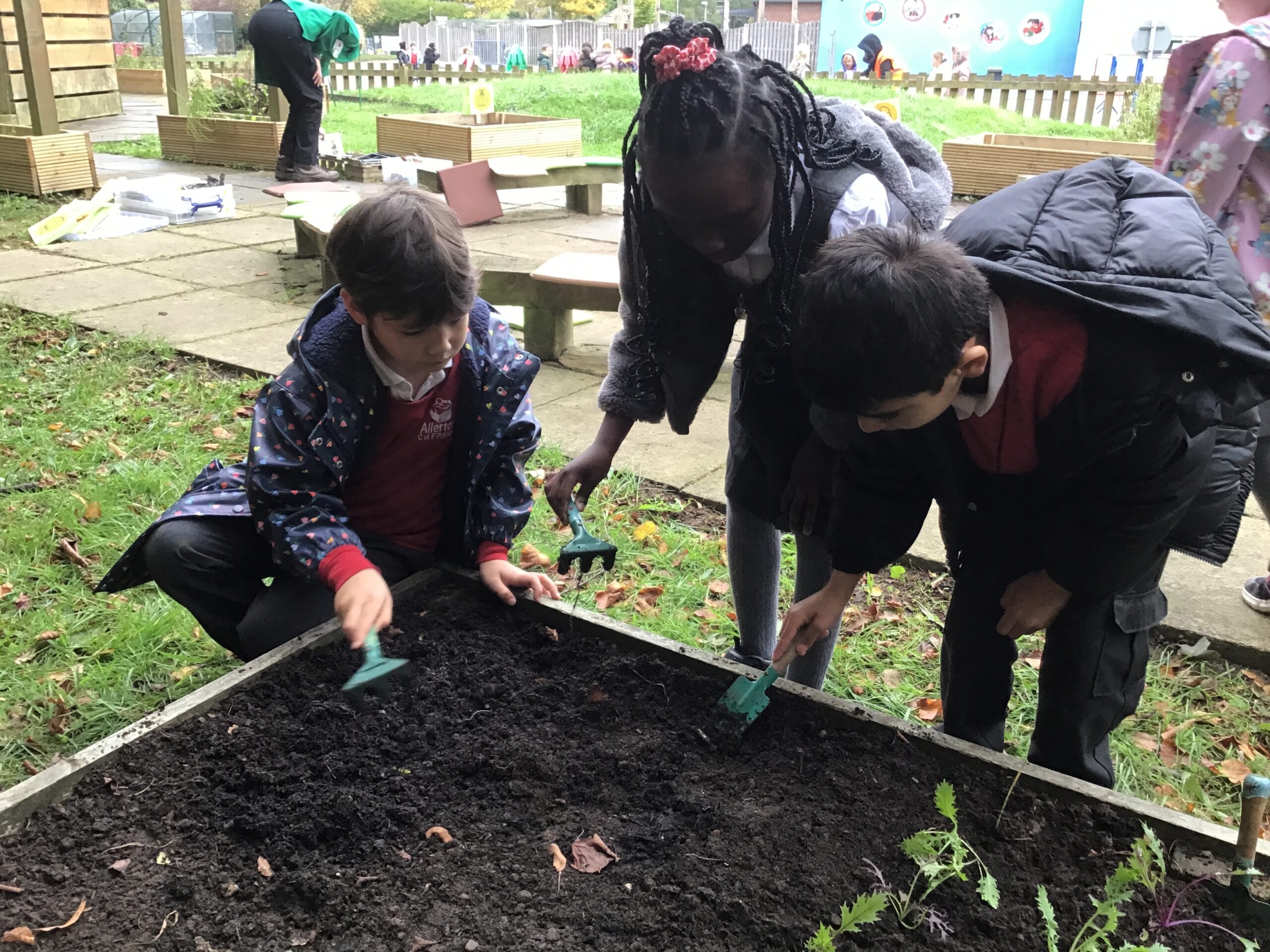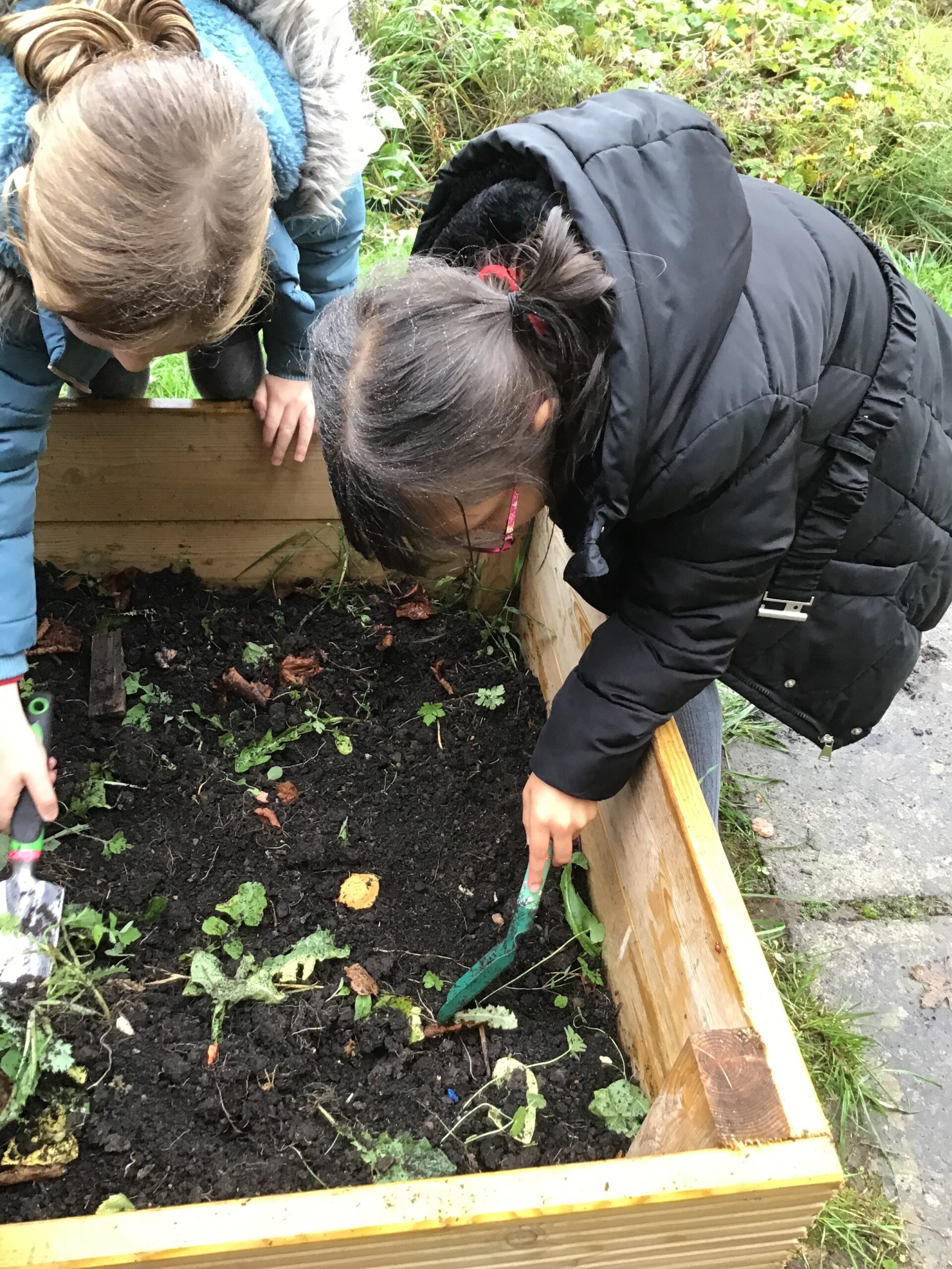 This year, children in year 2 are involved in a project called ‘Grow to Schools’ This organisation works with schools to deliver food growing programmes and will enable our children to grow, cook and eat healthy food. So on Monday we had our first session with Rachel and Mrs Whittaker. We weeded the vegetable beds, topped up the compost and planted winter salad and cabbages, learning that food growing isn’t just a spring/summer activity; a vegetable bed can be productive all year round!