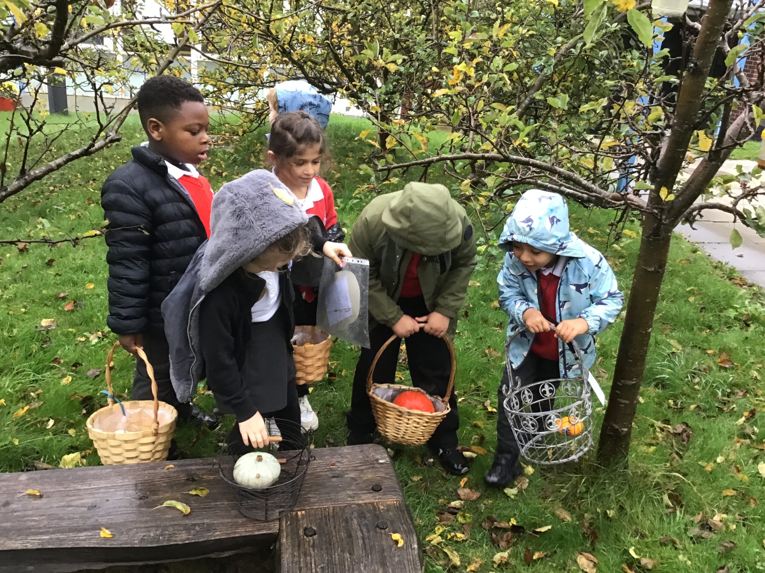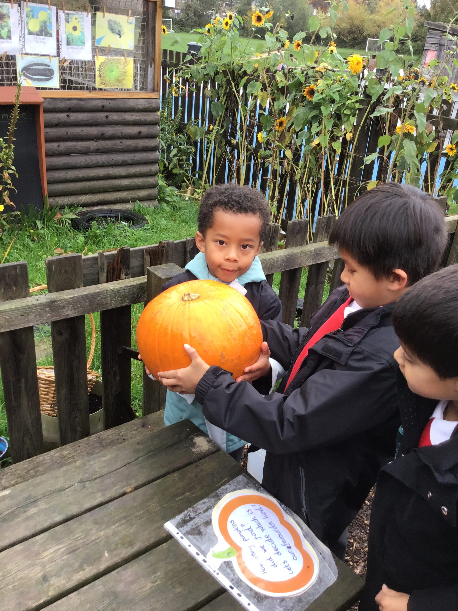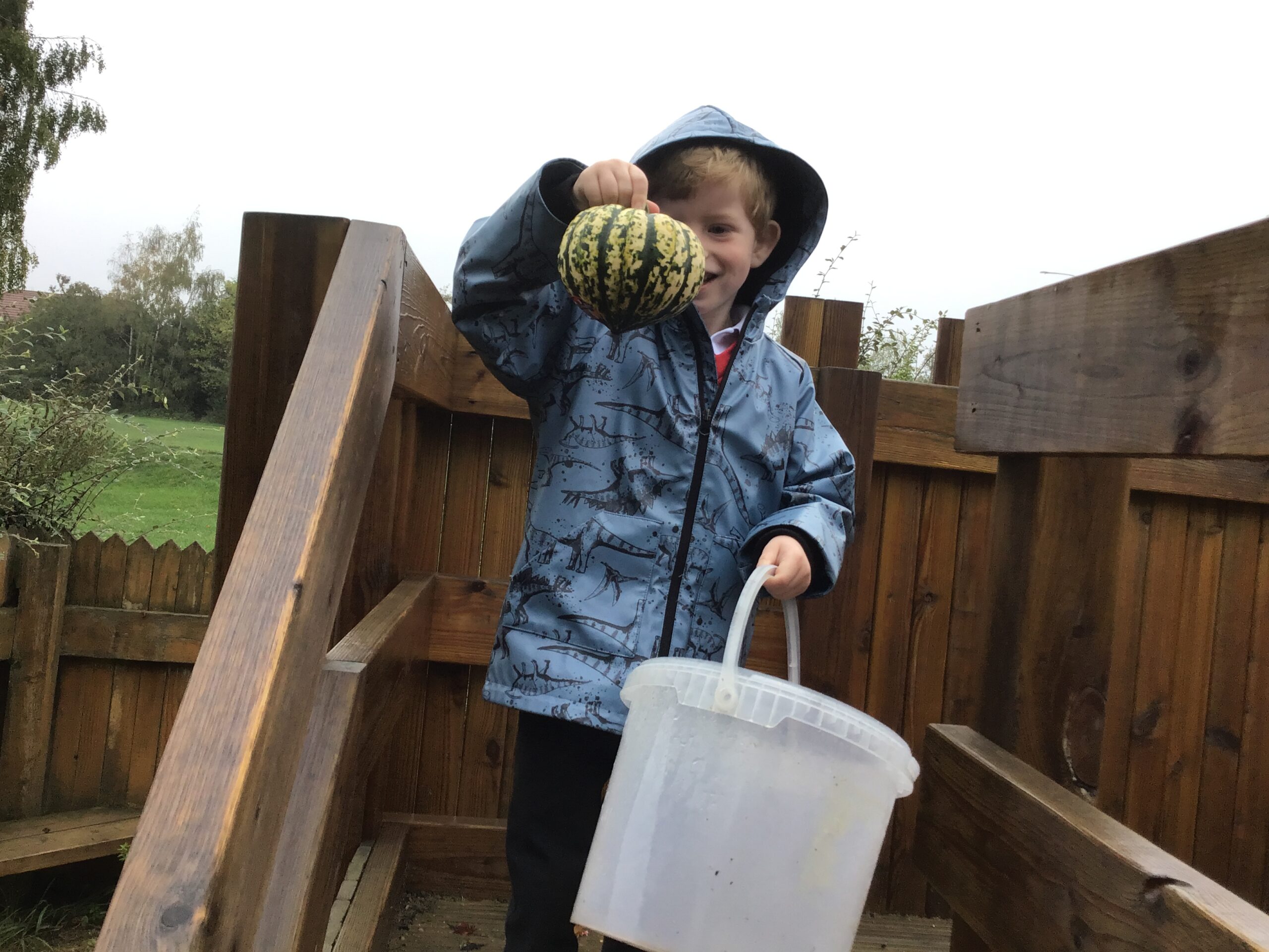 In forest schools we celebrated harvest by going on a pumpkin hunt around school. We followed clues to lead us to the next pumpkin.