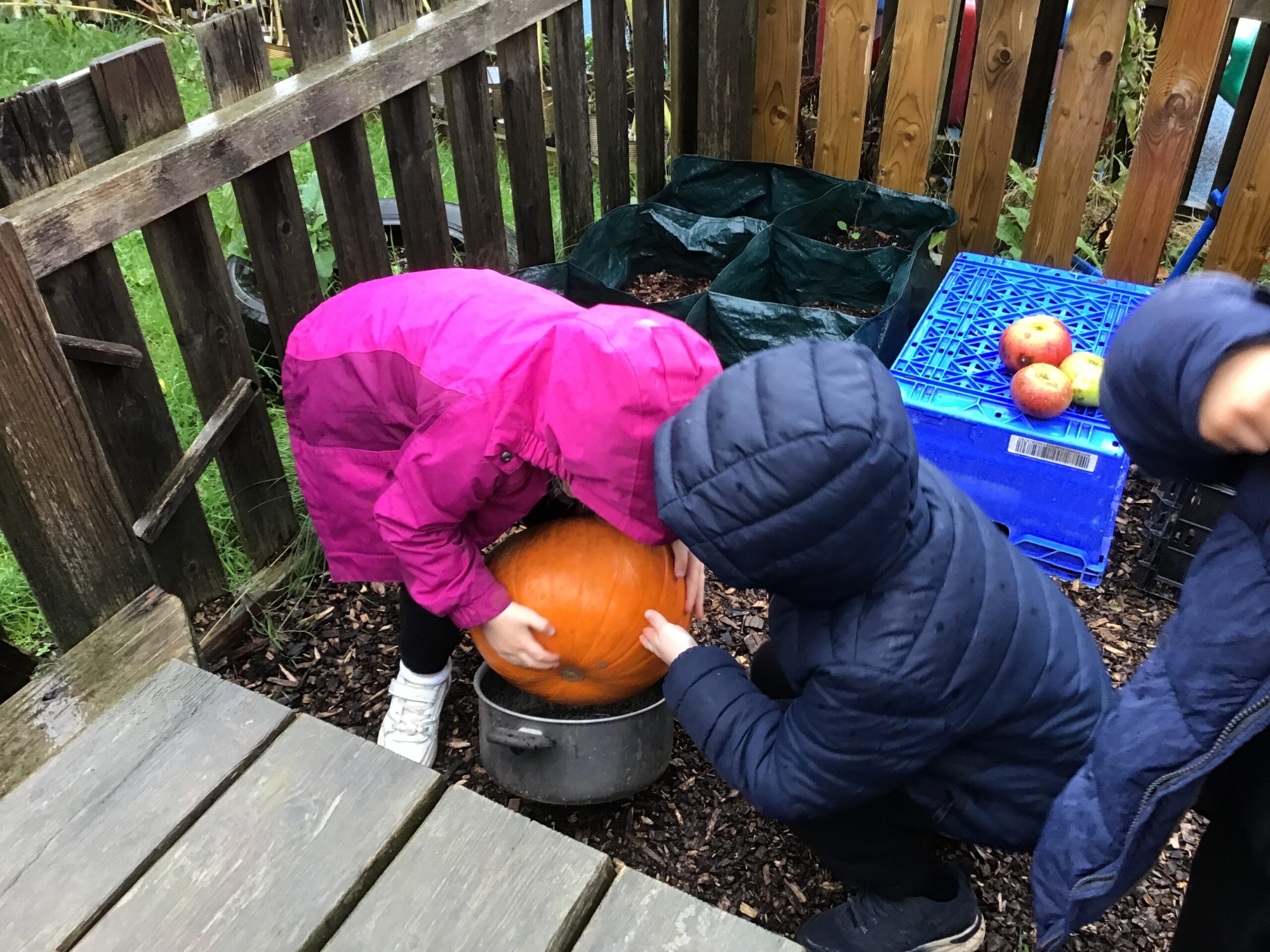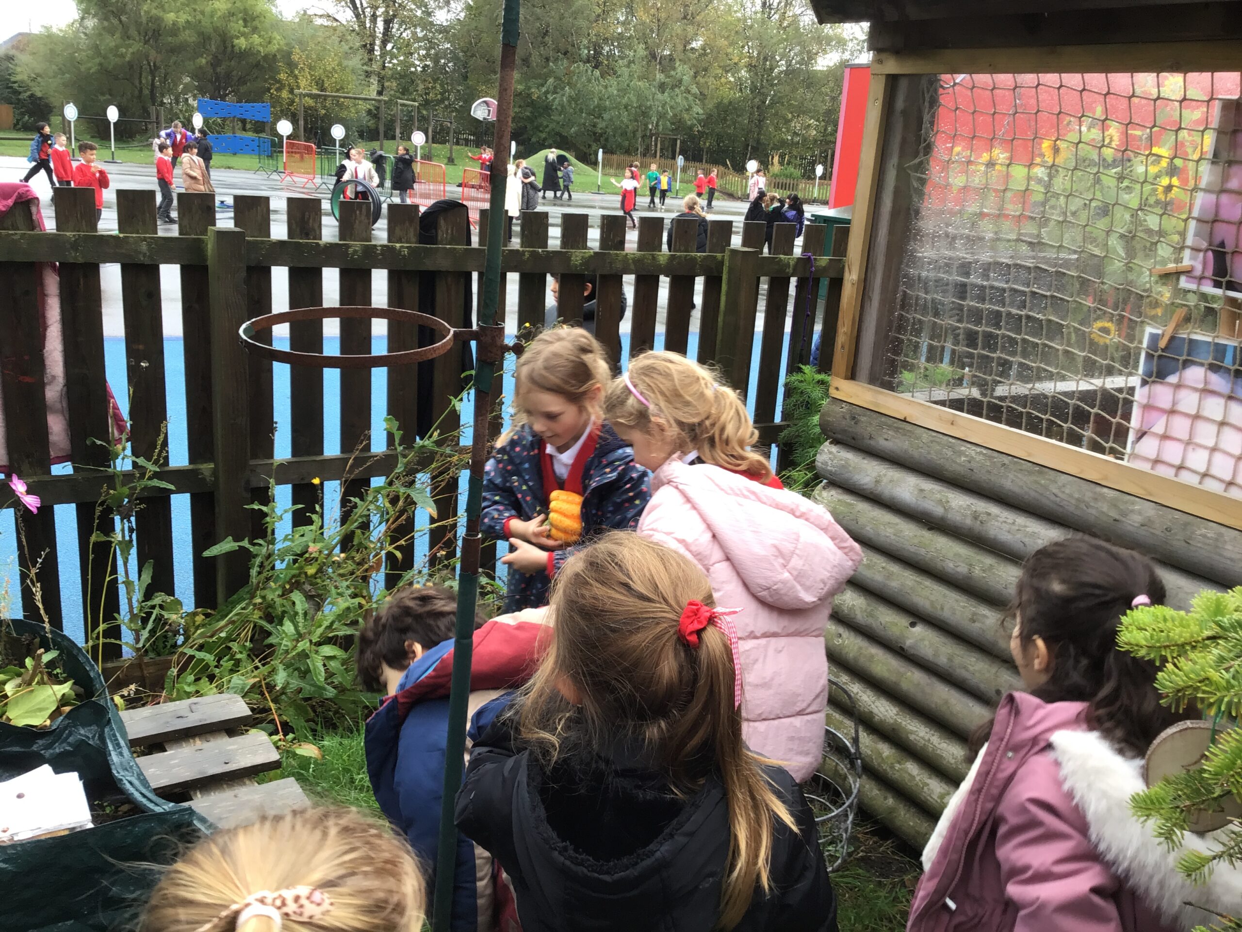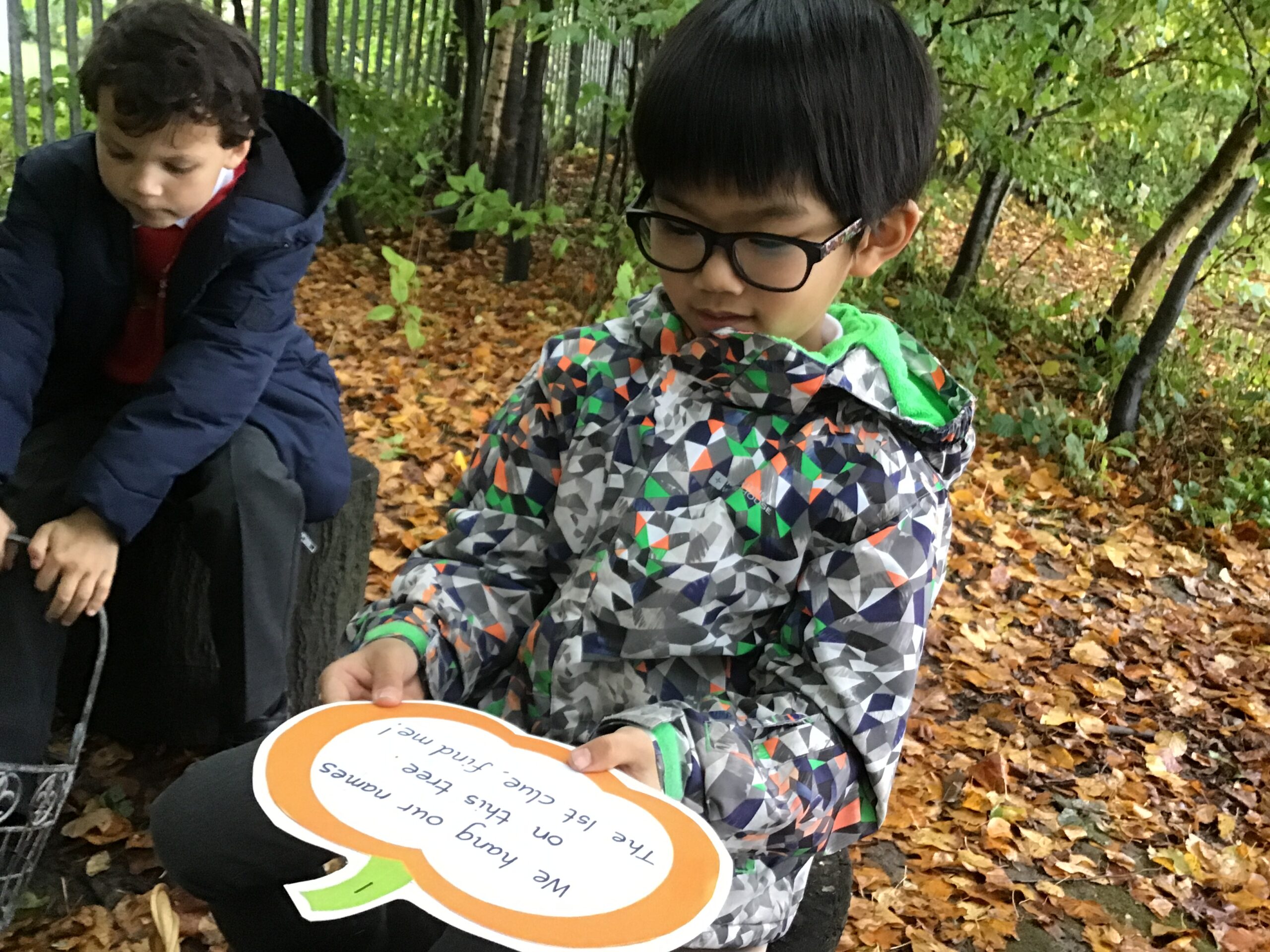 In forest schools we celebrated harvest by going on a pumpkin hunt around school. We followed clues to lead us to the next pumpkin.