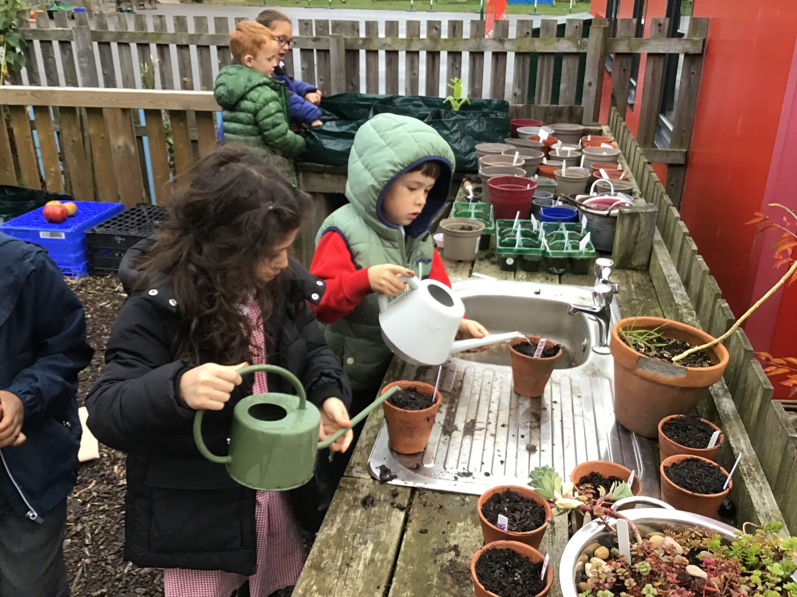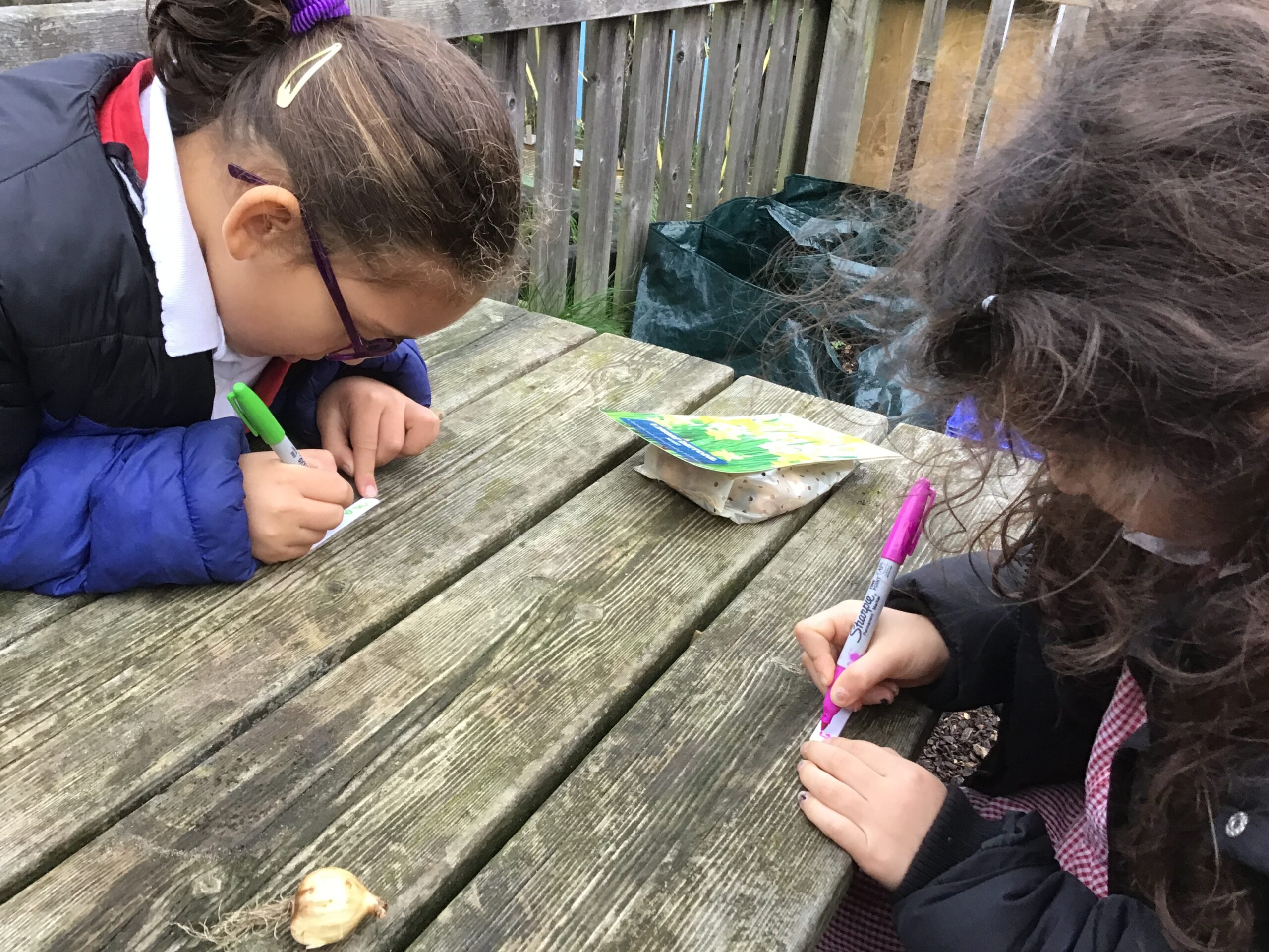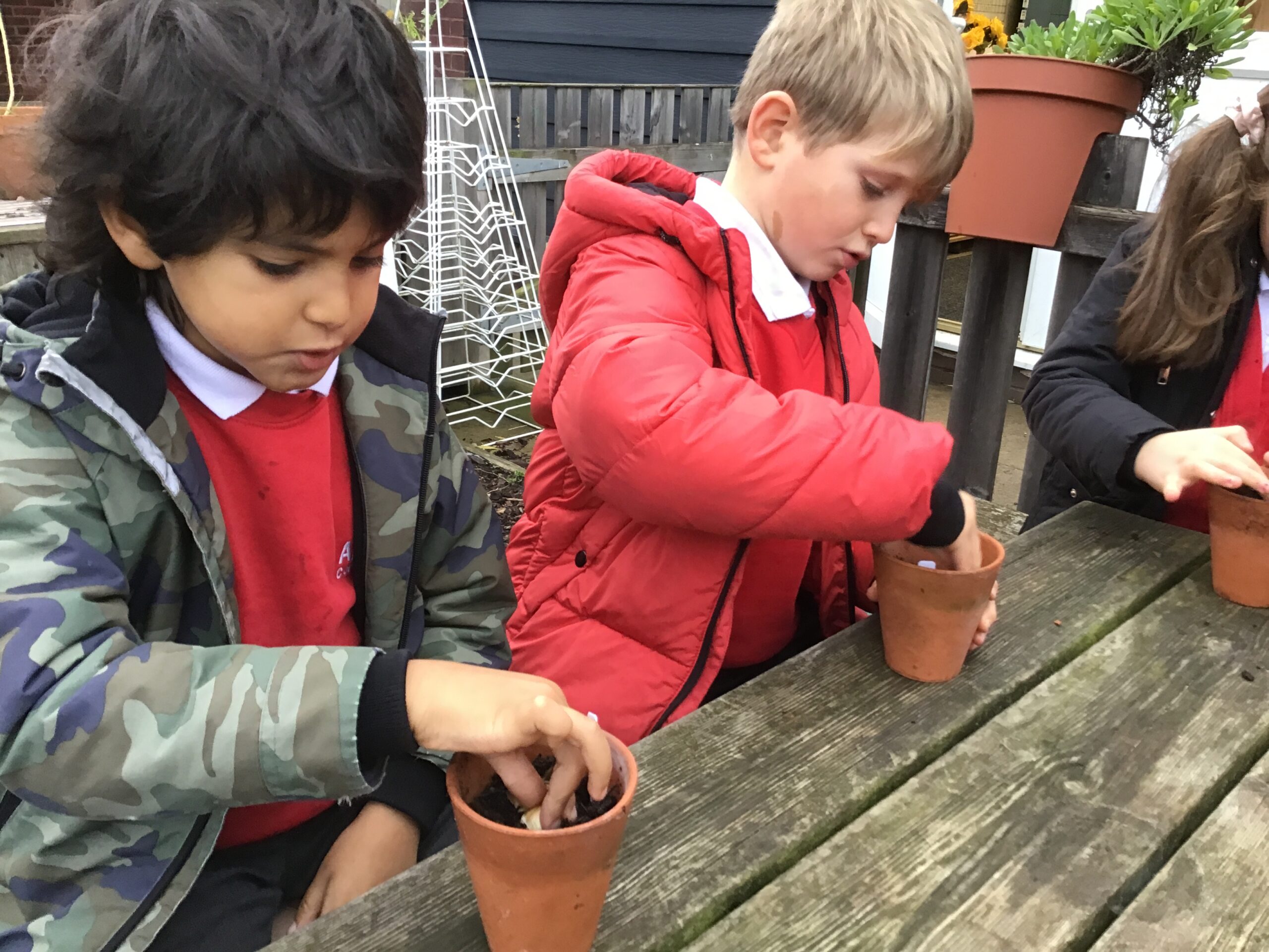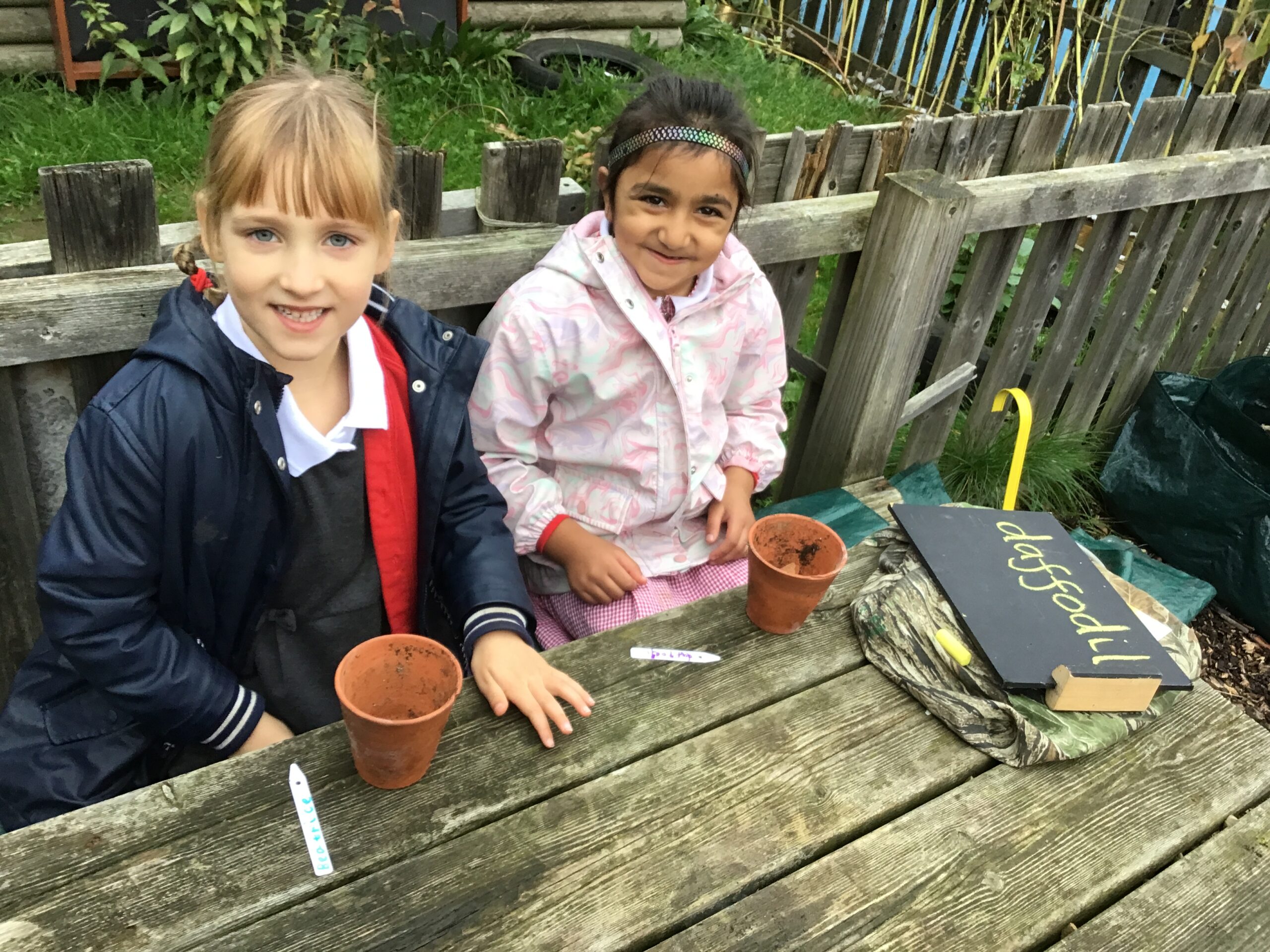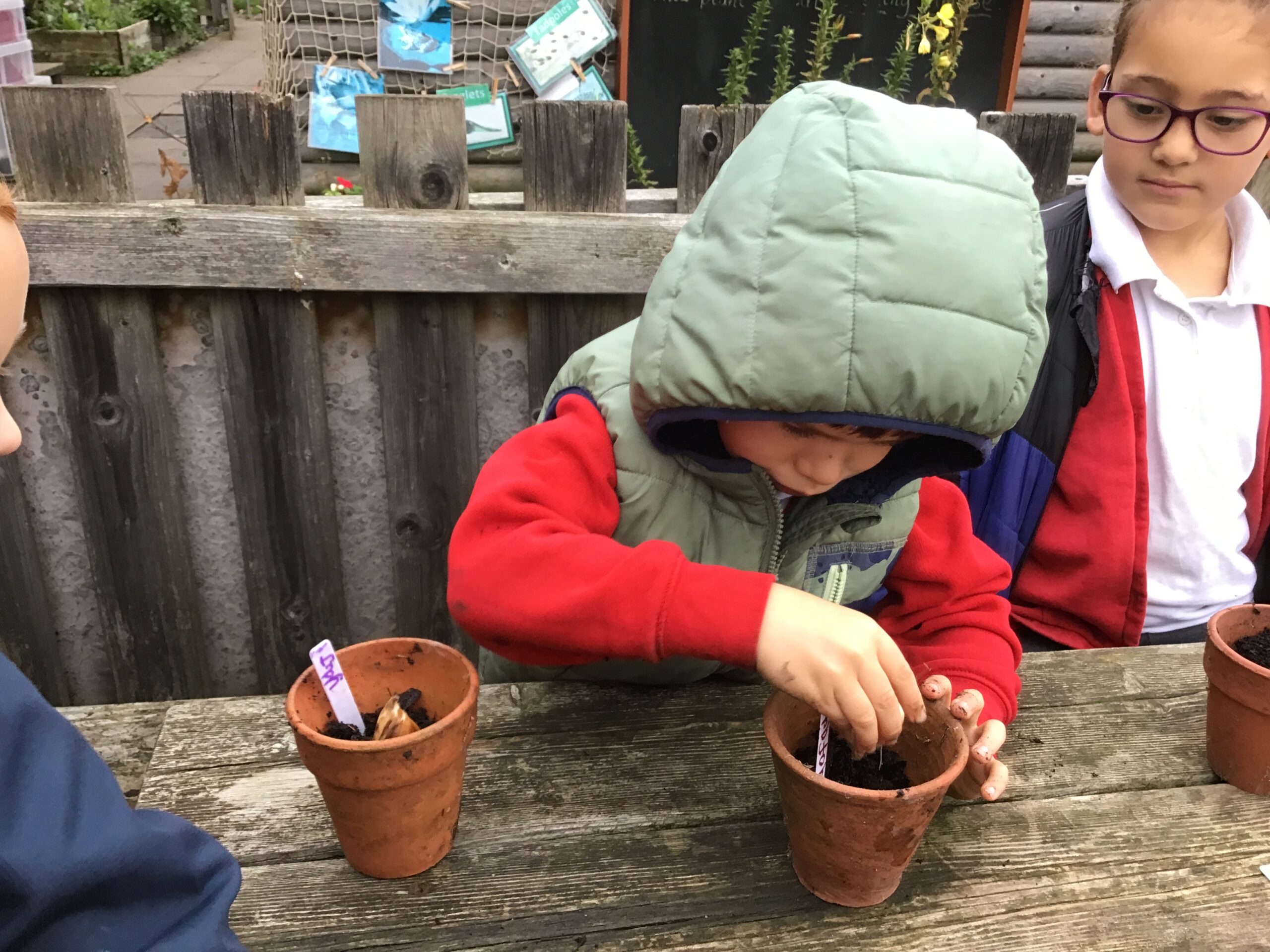 Children from Mrs Barnes’ class helped to plant daffodils in terracotta pots. First we looked carefully at a daffodil bulb and many thought it looked just like an onion! But of course an onion is a bulb that we can eat. We checked carefully that we were placing the daffodil bulb the right way up, point at the top, flat plate at the bottom, and then covered it carefully with soil. We look forward to seeing the beautiful yellow flowers in spring!