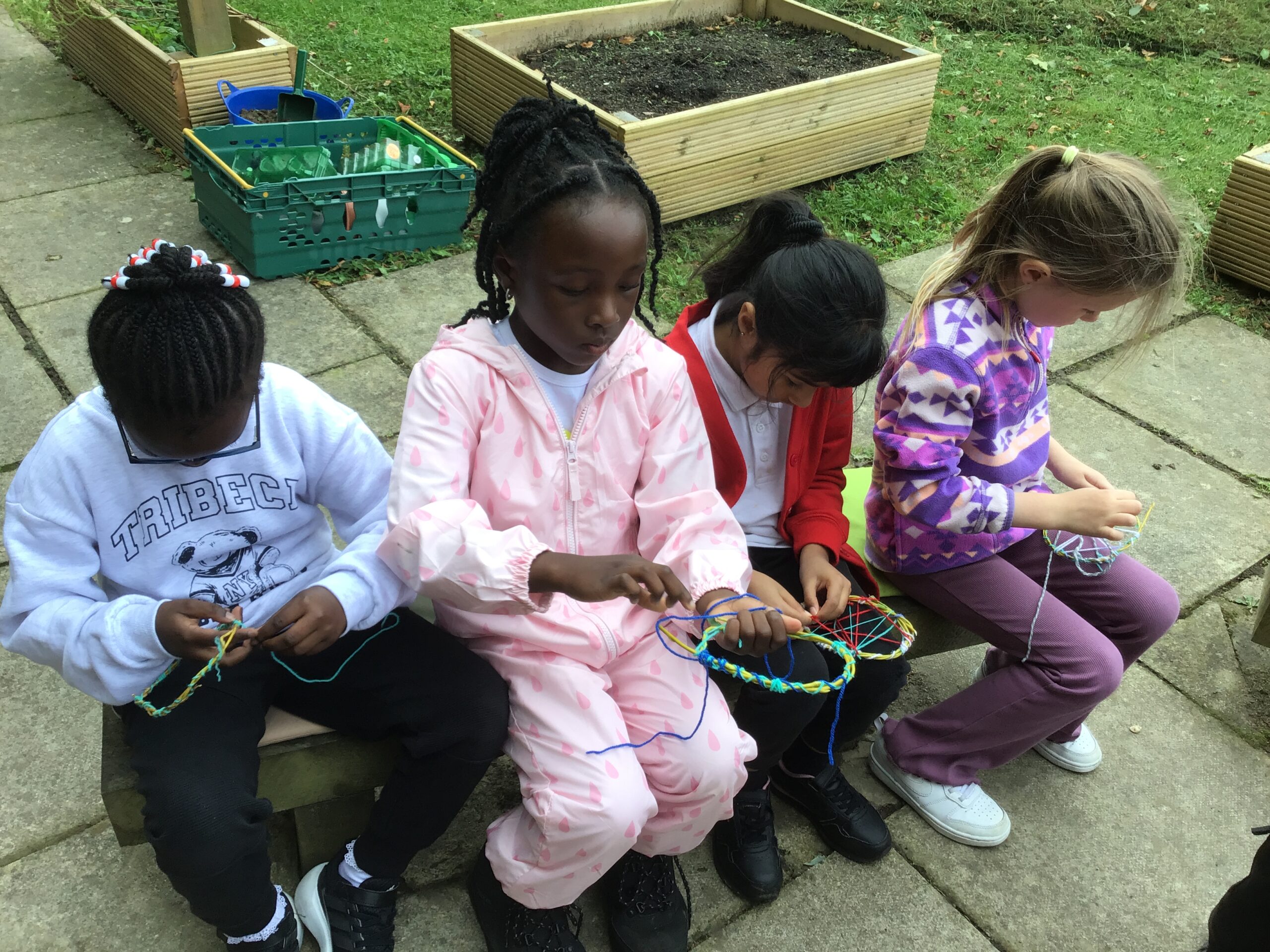 We explored the natural resources around our school grounds to inspire our creativity, making decorated postcards and weaving with willow from our very own tree.