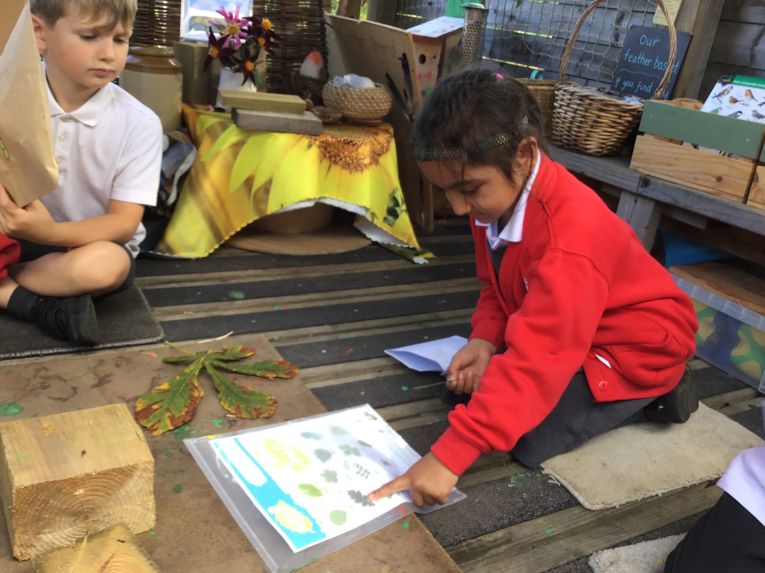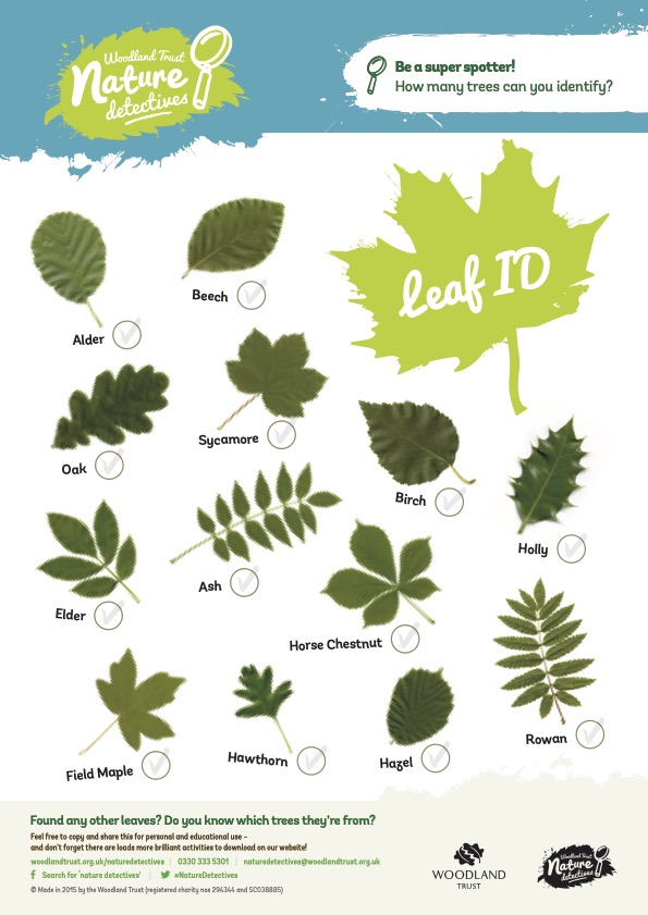 This week we were leaf detectives in forest school. We each opened an envelope and identified their leaf using this leaf ID chart from the Woodland trust.